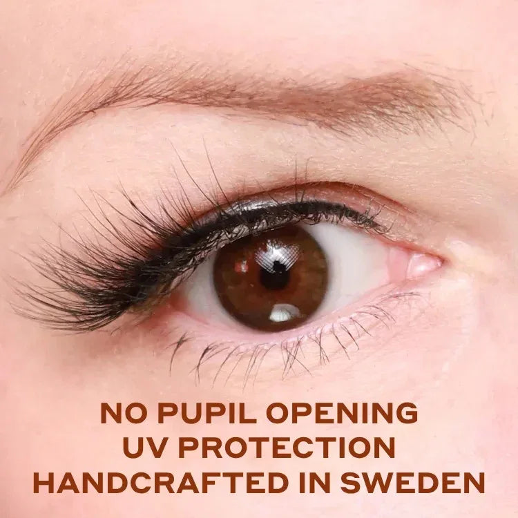 Unlike standard colored lenses, our lenses are handcrafted in Sweden using a unique tinting process that ensures a seamless blend with your natural eye color, especially for light-eyed individuals.